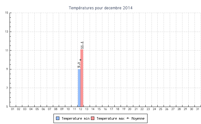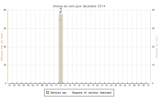 | 12 | 9.0 °C | 11.1 °C | 10.0 °C | 36.5 km/h (75.6 km/h) | SSO |